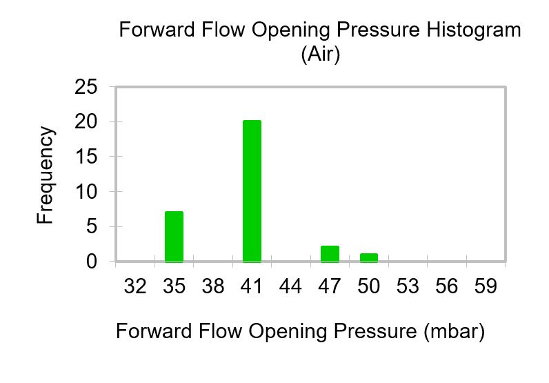 Opening Pressure is the differential pressure required for the valve to allow forward flow that meets the specified flow threshold. As the flow threshold increases, the Opening Pressure will also increase. Conversely, reducing the flow threshold will result in a lower Opening Pressure. Water test data is available upon request.