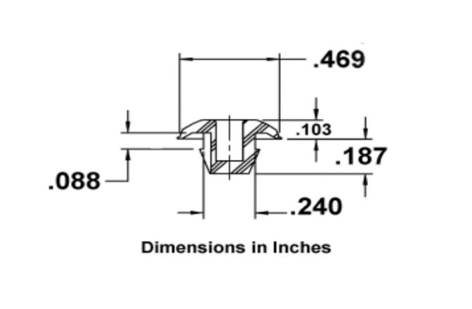 This relatively thick-sectioned, vented stem, push-in design is intended for pressure relief applications. The thickness of the seat can be changed to adjust the relief pressure. For the test data on this information sheet a seat thickness of 1.91 mm was used. It is made from a low cost material suitable for water and air.