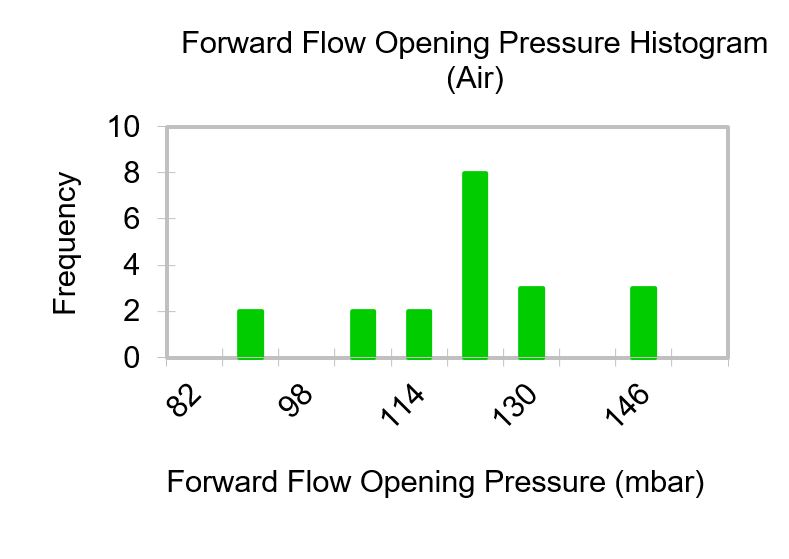 Opening Pressure is the differential pressure required for the valve to allow forward flow that meets the specified flow threshold. As the flow threshold increases, the Opening Pressure will also increase. Conversely, reducing the flow threshold will result in a lower Opening Pressure. Water test data is available upon request.