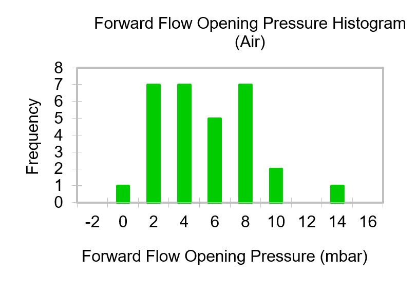 Opening Pressure is the differential pressure required for the valve to allow forward flow that meets the specified flow threshold. As the flow threshold increases, the Opening Pressure will also increase. Conversely, reducing the flow threshold will result in a lower Opening Pressure. Water test data is available upon request.